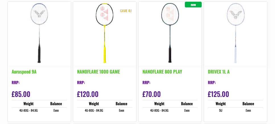 Badminton Warehouse — специализированный магазин для любителей и профессионалов бадминтона. В каталоге — ракетки Yonex, Li-Ning, Victor, а также обувь, сумки, аксессуары и даже товары для других ракеточных видов спорта. Магазин доставляет заказы по всему миру и известен отличным сервисом.