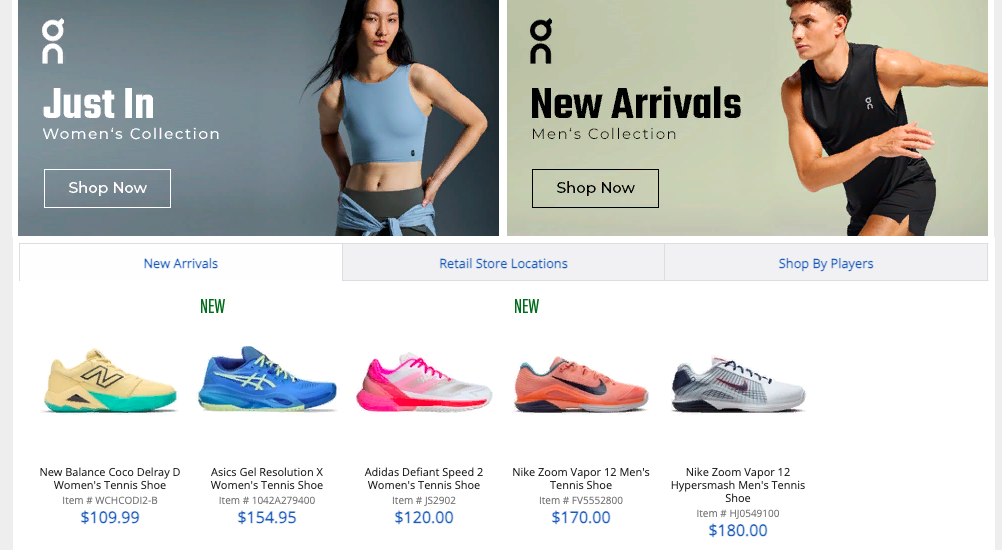 Tennis Warehouse — один из крупнейших специализированных магазинов теннисного инвентаря в США. Здесь огромный выбор ракеток Wilson, Babolat, Head, Prince и других топовых брендов, а также аксессуары, обувь и одежда для тенниса. Магазин известен профессиональной поддержкой, быстрой доставкой и возможностью подобрать ракетку под любой стиль игры.