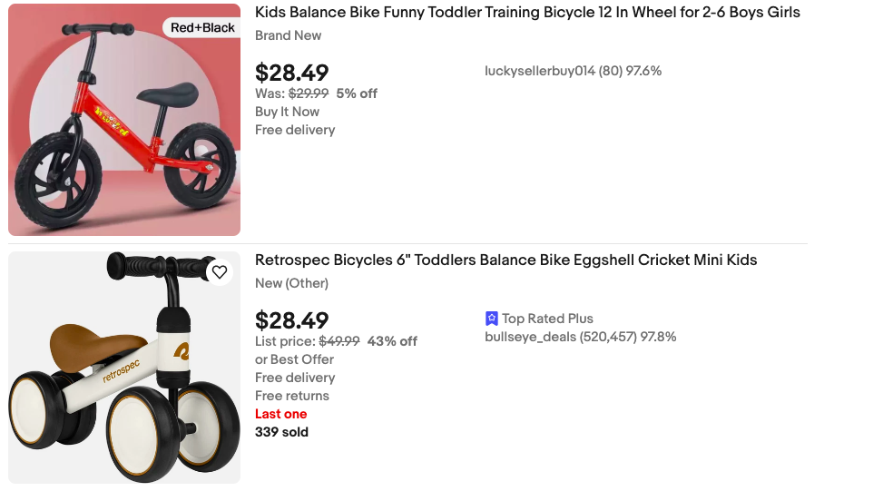 eBay – международная торговая площадка, где можно найти новые и б/у беговелы и электромобили из США по привлекательным ценам. Здесь часто встречаются редкие модели и лимитированные серии. eBay предлагает систему защиты покупателей и возможность торга, что делает покупки выгодными и безопасными.
