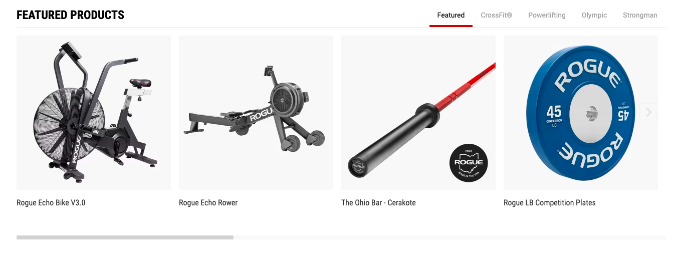 Rogue Fitness — специализированный магазин профессионального спортивного оборудования и аксессуаров. В ассортименте — силовые тренажёры, гири, штанги, а также высококачественные коврики для тренировок. Rogue Fitness славится прочностью и долговечностью своей продукции, что делает его идеальным выбором для серьезных спортсменов и любителей.