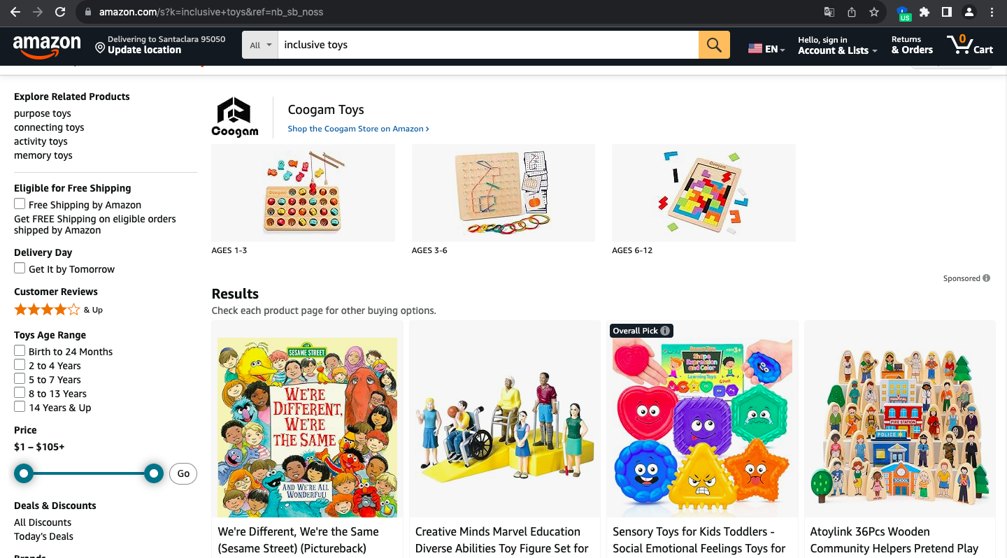 Amazon — крупнейшая онлайн-платформа, где представлен огромный выбор инклюзивных игрушек, кукол с особенностями, аксессуаров для кукол и сенсорных наборов. Здесь вы легко найдёте куклы с инвалидными колясками, слуховыми аппаратами, протезами, диабетическими помпами, а также игрушки для сенсорного развития: мячи с разной текстурой, фиджеты, наборы для развития моторики и внимания. Преимущество Amazon — постоянное обновление ассортимента, широкий диапазон цен и возможность читать реальные отзывы покупателей. Это отличное место для поиска как популярных брендов, так и уникальных авторских решений.