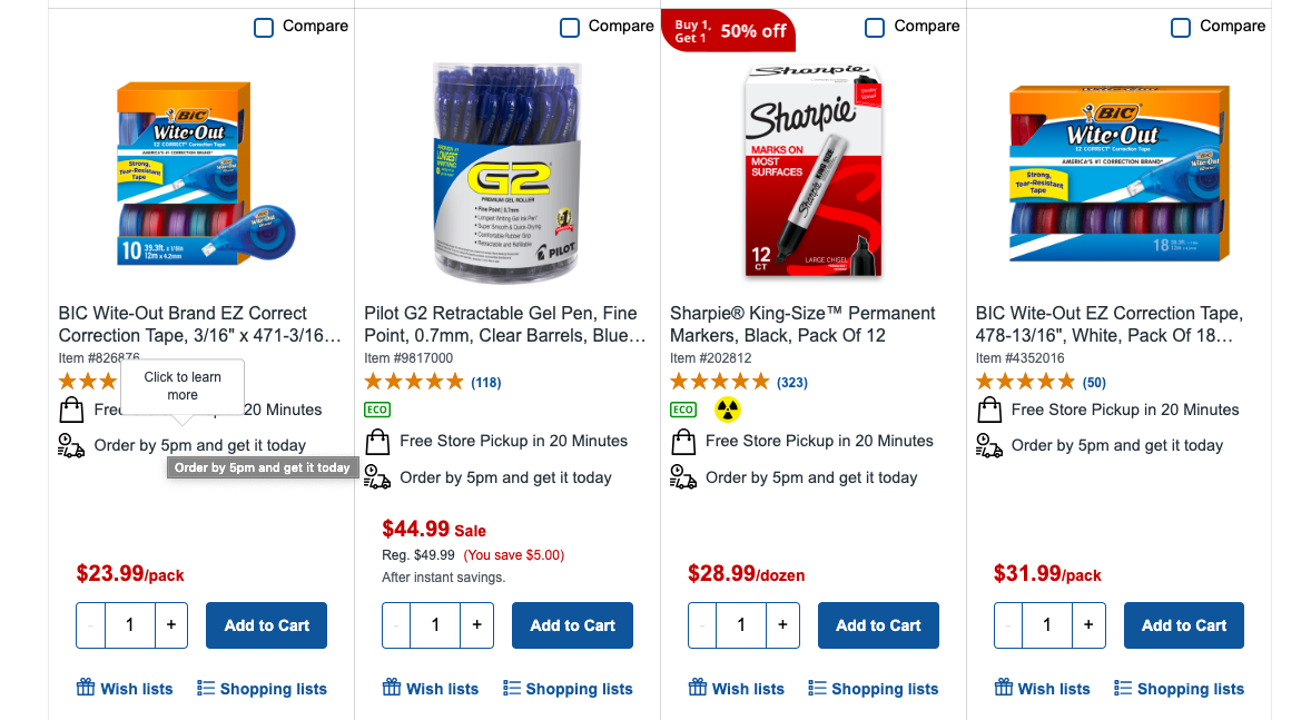 Staples — крупнейшая сеть магазинов канцелярских товаров в США, предлагающая широкий выбор продукции для офиса, школы и дома. В каталоге Staples — бумага, ручки, маркеры, папки, органайзеры, планеры, техника и мебель для рабочего места. Магазин славится удобным онлайн-шопингом, оптовыми скидками, программой лояльности и быстрой доставкой. Staples — отличный выбор для тех, кто ценит качество и разнообразие.