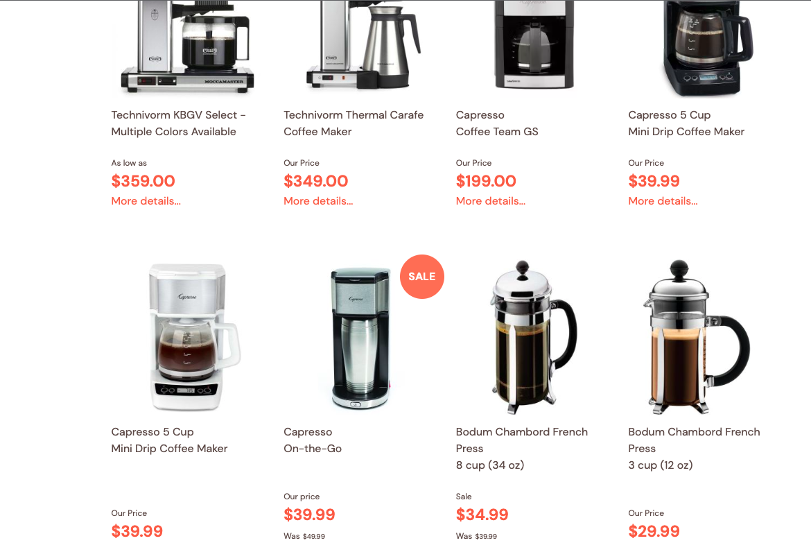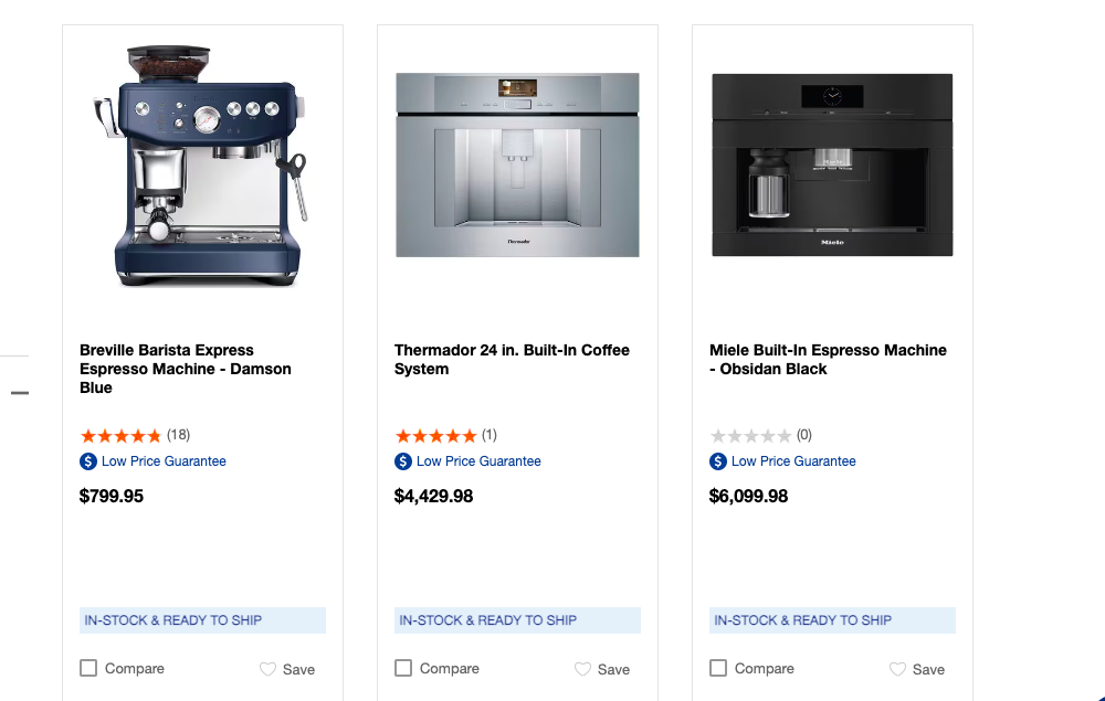 P.C. Richard & Son — один из старейших американских ритейлеров бытовой техники, где представлен широкий выбор кофемашин, кофеварок и аксессуаров. В каталоге: эспрессо-машины, капельные кофеварки, кофемолки, капсулы, фильтры, термокружки и многое другое. Магазин работает только с топовыми брендами (Keurig, Breville, Cuisinart и др.), гарантирует низкие цены и быструю доставку. Здесь можно подобрать технику под любые потребности и бюджет.