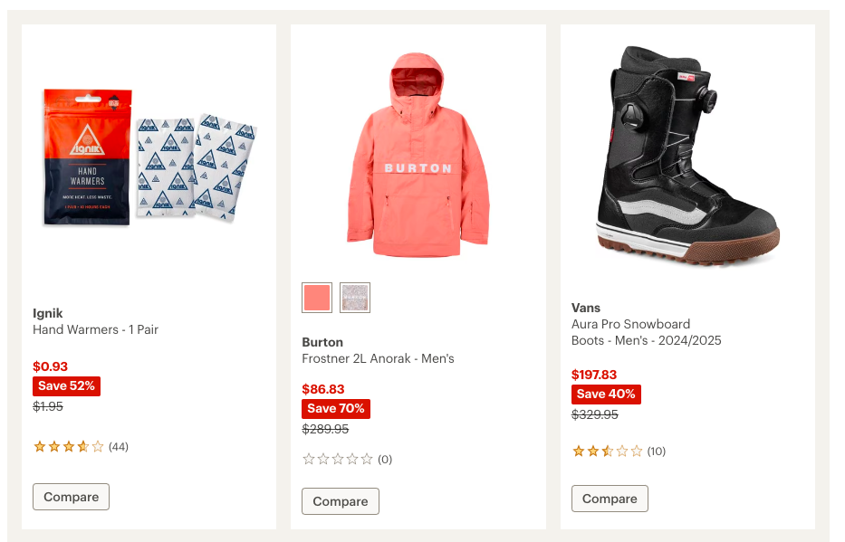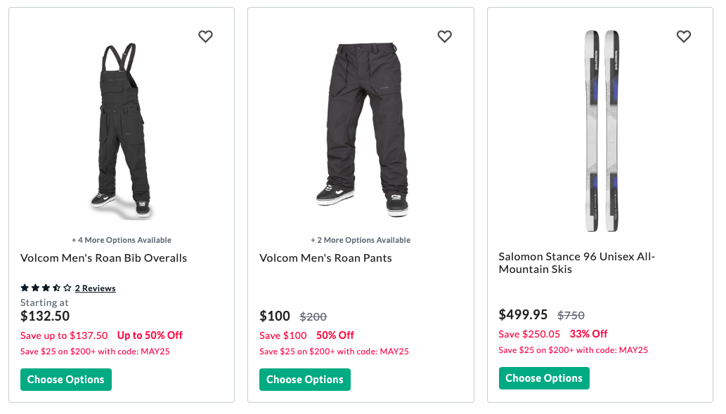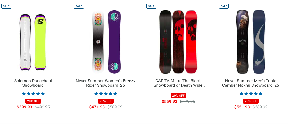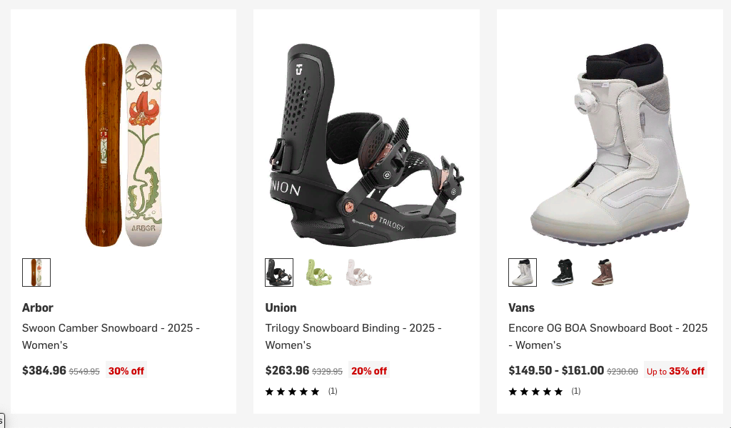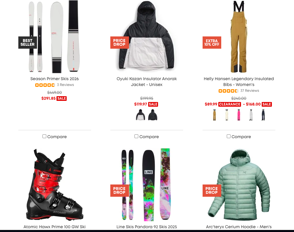 Evo — один из самых популярных онлайн-магазинов США для любителей зимних видов спорта. Здесь огромный выбор лыж, сноубордов, ботинок, креплений, одежды и аксессуаров как для новичков, так и для профи. Удобный сайт с подробными гидами по выбору, фильтрами по брендам и размерам, а также “sell out risk” — индикатор остатка товара. Evo регулярно проводит распродажи, предлагает бесплатную доставку по США на заказы от $50 и имеет отличную политику возврата. Магазин славится качественным сервисом и возможностью найти как новинки сезона, так и выгодные предложения на прошлогодние коллекции.
