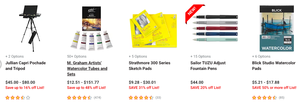 Blick Art Materials — один из самых крупных и популярных магазинов художественных товаров в США. Здесь представлен огромный выбор профессиональных красок: масляных, акриловых, акварельных, гуаши, а также специализированных материалов для реставрации и живописи. Blick сотрудничает с ведущими брендами, такими как Golden, Liquitex, Winsor & Newton, Grumbacher и другими. Магазин предлагает удобный поиск, подробные описания товаров и регулярные акции. Заказ с Blick — это гарантия качества и оригинальности продукции.
