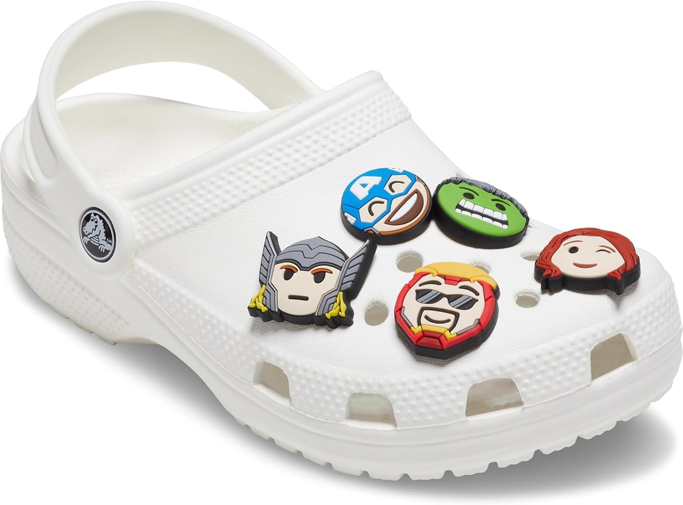 Ещё один важный элемент успеха Crocs — это Jibbitz; декоративные аксессуары, которые вставляются в отверстия на классических моделях. Они появились в 2005 году, когда семейная пара придумала украшения для Crocs обуви своих детей. Вскоре компания Crocs выкупила права на бренд Jibbitz и начала массовое производство. На данный момент количество возможных модификаций уже сложно подсчитать даже приблизительно, настолько популярными стали эти “украшения”.