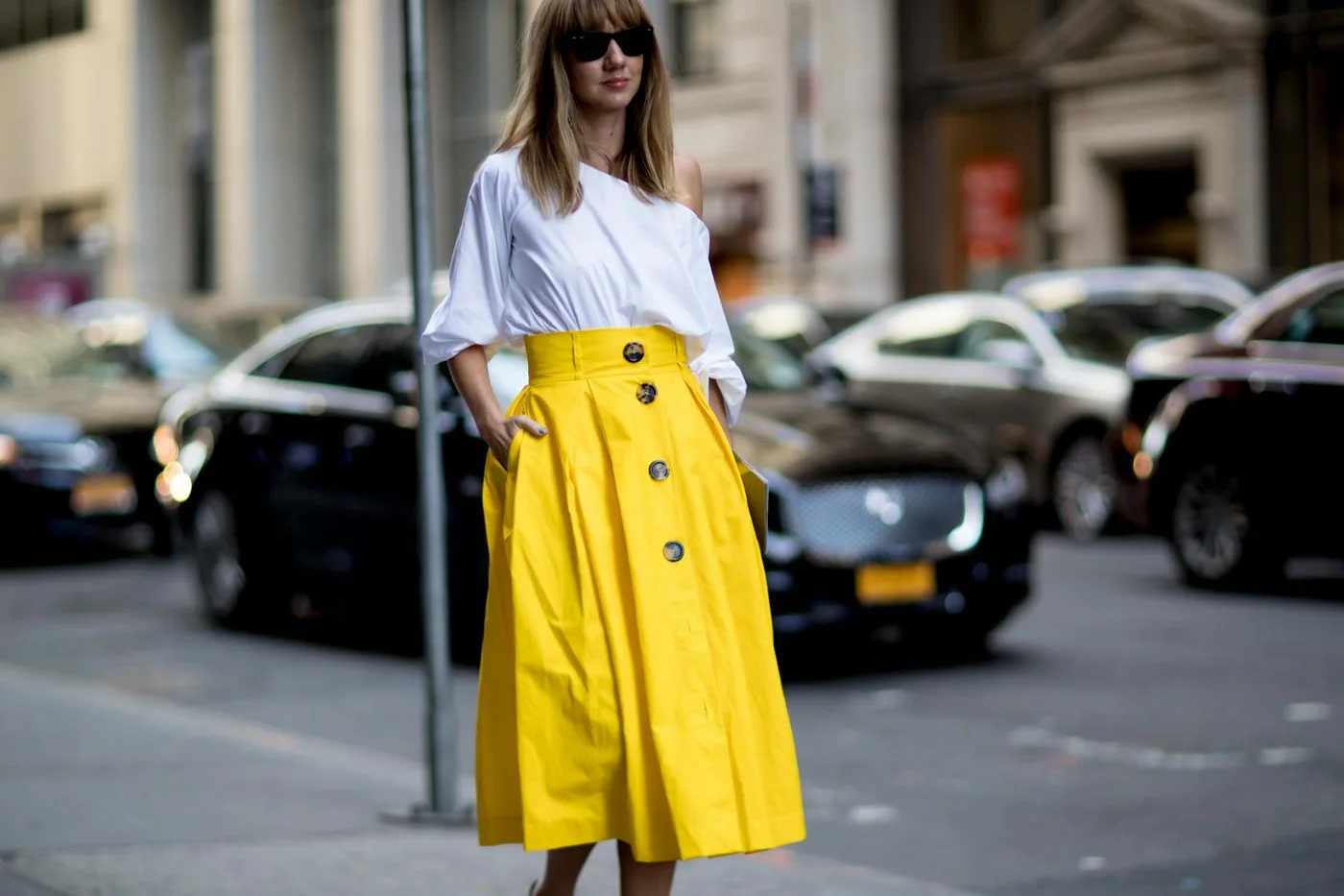 Учитывая модный ажиотаж, проблем с поиском вещей ярко-жёлтого цвета не возникнет. Сейчас легко отыскать как изысканные платья нужной расцветки, так и вещи формата casual — даже с прицелом на осень!