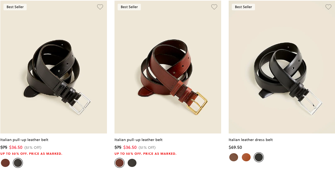 J.Crew — бренд, известный своим классическим американским стилем и качественными аксессуарами. В ассортименте магазина — стильные кожаные ремни с лаконичным дизайном, которые подойдут как для повседневной носки, так и для деловых образов. J.Crew предлагает удобную навигацию по сайту и регулярные скидки.