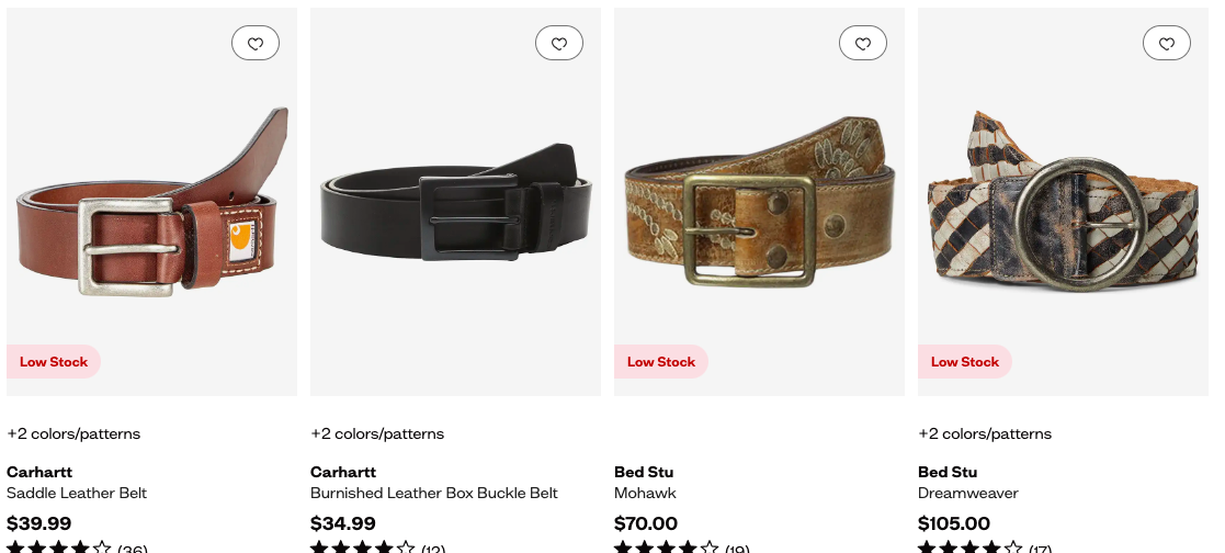 6pm — стоковый интернет-магазин одежды и аксессуаров, где можно купить мужские ремни известных брендов с большими скидками. В ассортименте представлены модели от Tommy Hilfiger, Levi’s, Columbia и других. 6pm предлагает выгодные цены и быструю доставку по США.