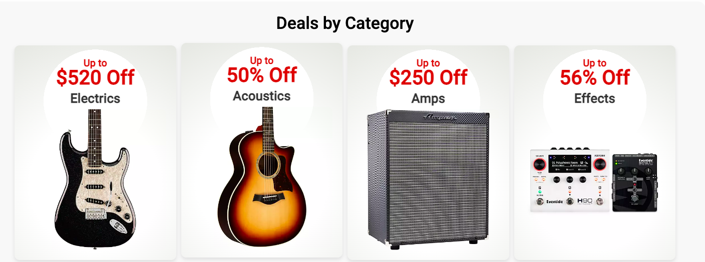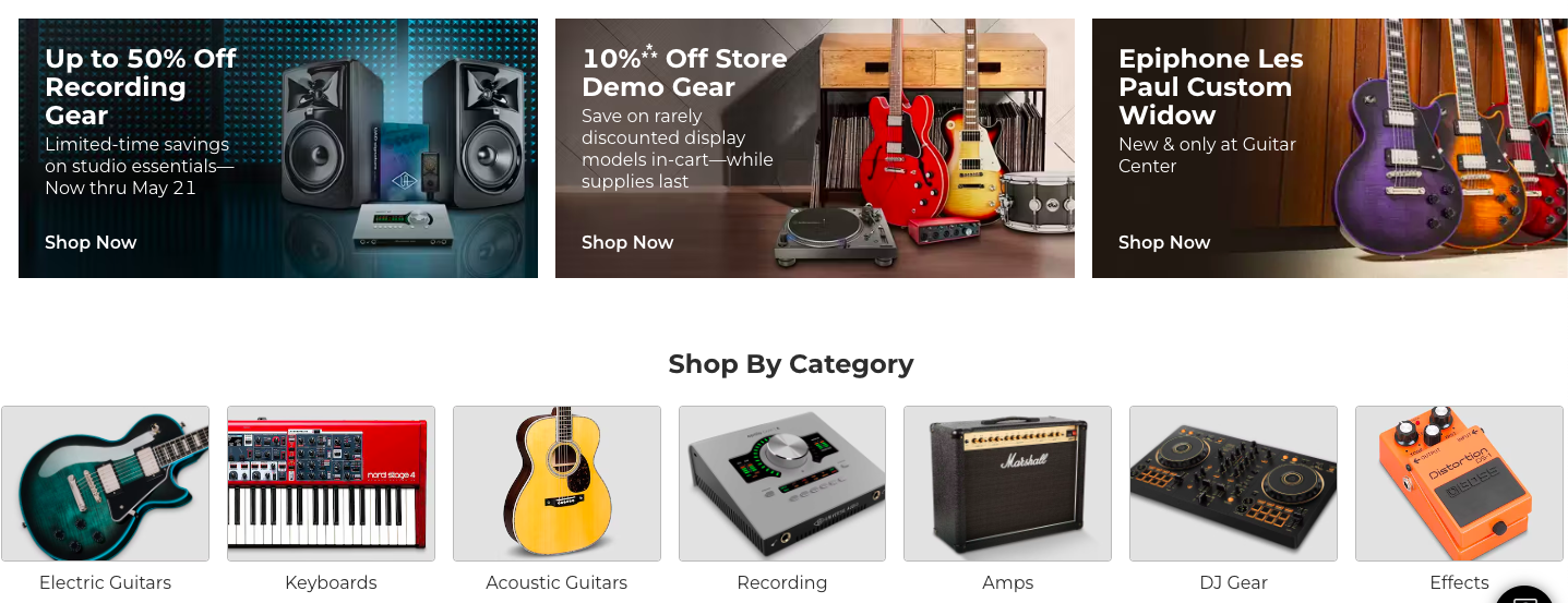 Guitar Center — крупнейшая сеть музыкальных магазинов в США и один из лидеров онлайн-продаж. В каталоге — гитары, клавишные, ударные, духовые, оборудование для студий и аксессуары. Guitar Center предлагает как новые, так и подержанные инструменты, что особенно удобно для новичков с ограниченным бюджетом. Приятный бонус — 45-дневная политика возврата, возможность протестировать инструмент и частые распродажи. Магазин также известен своим широким выбором и профессиональной поддержкой.