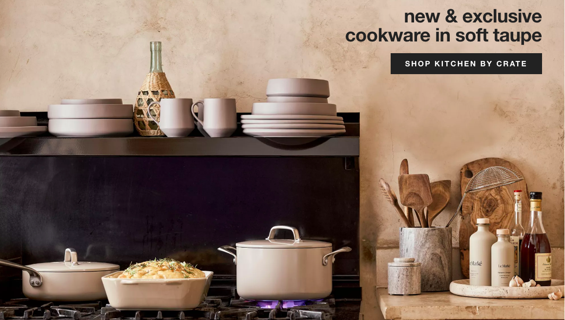 Crate & Barrel — магазин, который идеально сочетает функциональность и современный дизайн. Здесь представлен широкий выбор посуды, столовых приборов, кухонных принадлежностей, кастрюль, сковород, бокалов, сервировочных аксессуаров и текстиля. Crate & Barrel предлагает как собственные коллекции, так и товары известных брендов. Магазин славится регулярными акциями, распродажами и возможностью собрать стильную коллекцию для сервировки стола и кухни.