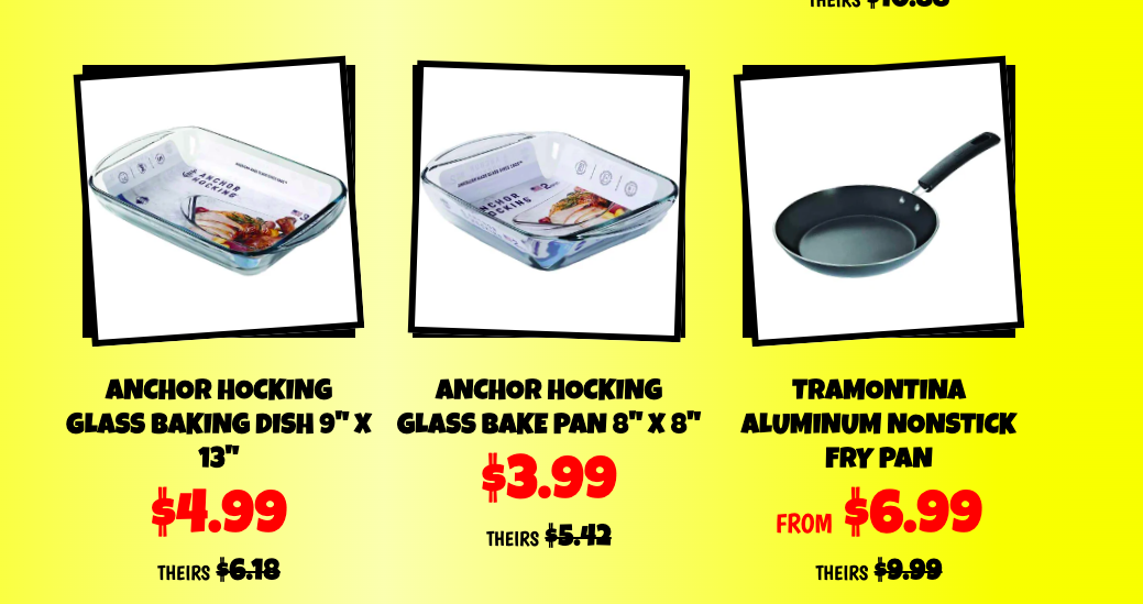 Ollie’s Bargain Outlet — магазин, где можно выгодно купить посуду, столовые приборы, кухонные принадлежности, кастрюли, сковороды, формы для выпечки и аксессуары от известных брендов. Ollie’s славится большими скидками, акциями и возможностью найти товары премиум-класса по сниженным ценам. Отличный вариант для тех, кто хочет сэкономить, не жертвуя качеством.
