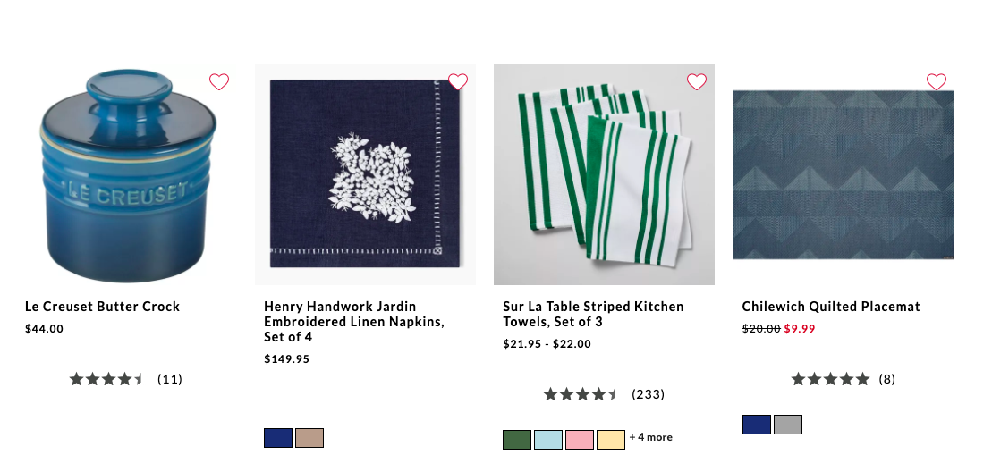 Sur La Table — универсальный магазин для тех, кто любит готовить и ценит качество. В каталоге — посуда, кухонная техника, аксессуары для выпечки, сервировки, хранения и декора. Здесь можно найти как базовые, так и профессиональные инструменты, а также товары для сервировки и тематические коллекции. Sur La Table часто проводит распродажи, предлагает выгодные комплекты и эксклюзивные товары. Магазин популярен среди домашних кулинаров и профессиональных шефов за широкий ассортимент и современные решения для кухни.
