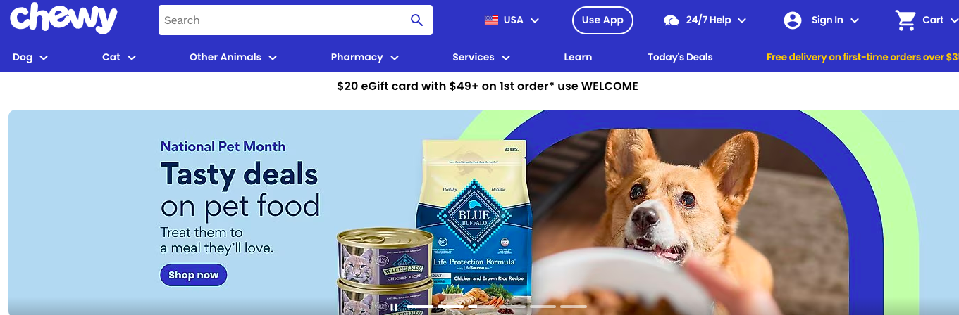 Petco — универсальный магазин для владельцев кошек, собак, птиц, рыб и других домашних животных. Здесь можно купить всё: от кормов и витаминов до одежды, переносок и наполнителей. Petco предлагает быструю доставку, программу повторных заказов (Repeat Delivery) с дополнительными скидками, а также бонусы для участников Petco Pals Rewards. Магазин известен удобной навигацией, фильтрами по видам животных и регулярными интересными предложениями.