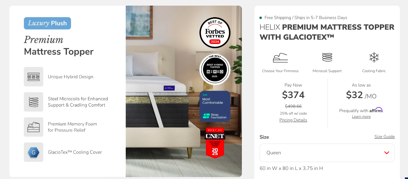 Helix Sleep — известный американский производитель матрасов и аксессуаров для сна. Компания предлагает индивидуальный подбор матраса по вашему типу сна, весу и предпочтениям, благодаря онлайн-опросу. В ассортименте — гибридные и пенополиуретановые матрасы, подушки, наматрасники и постельное белье. Helix Sleep предоставляет 100-дневный пробный период и 10-летнюю гарантию на матрасы, а также бесплатную доставку по США. Это идеальный вариант для тех, кто ценит индивидуальный подход и комфорт.