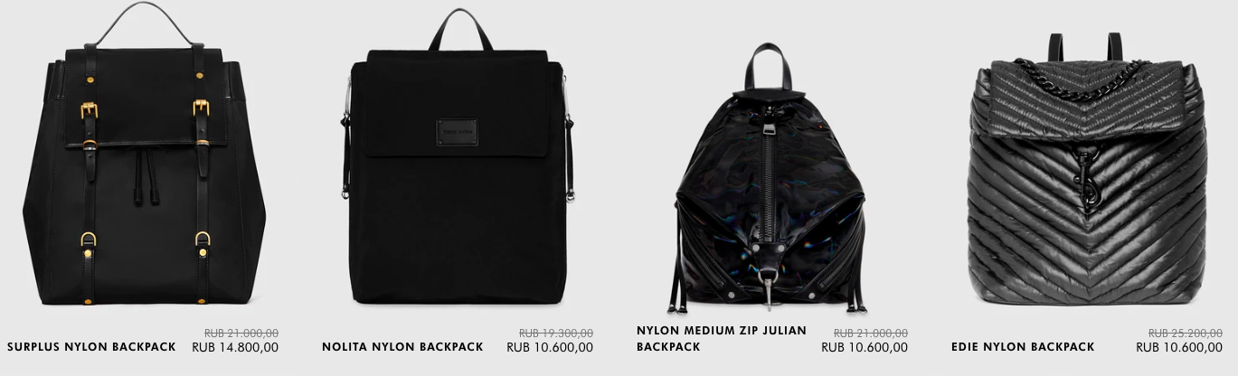 - Выберите понравившуюся модель рюкзака из кожзама на официальном сайте одного из брендов.