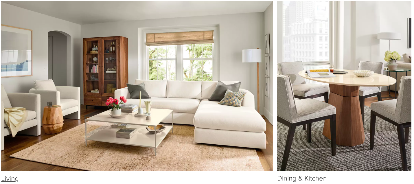 Room & Board — магазин, специализирующийся на современной мебели из натуральных материалов. Здесь можно найти диваны, кровати, столы, стулья, системы хранения и аксессуары, выполненные в лаконичном и функциональном стиле. Room & Board ценят за высокое качество, экологичность и поддержку локальных производителей.