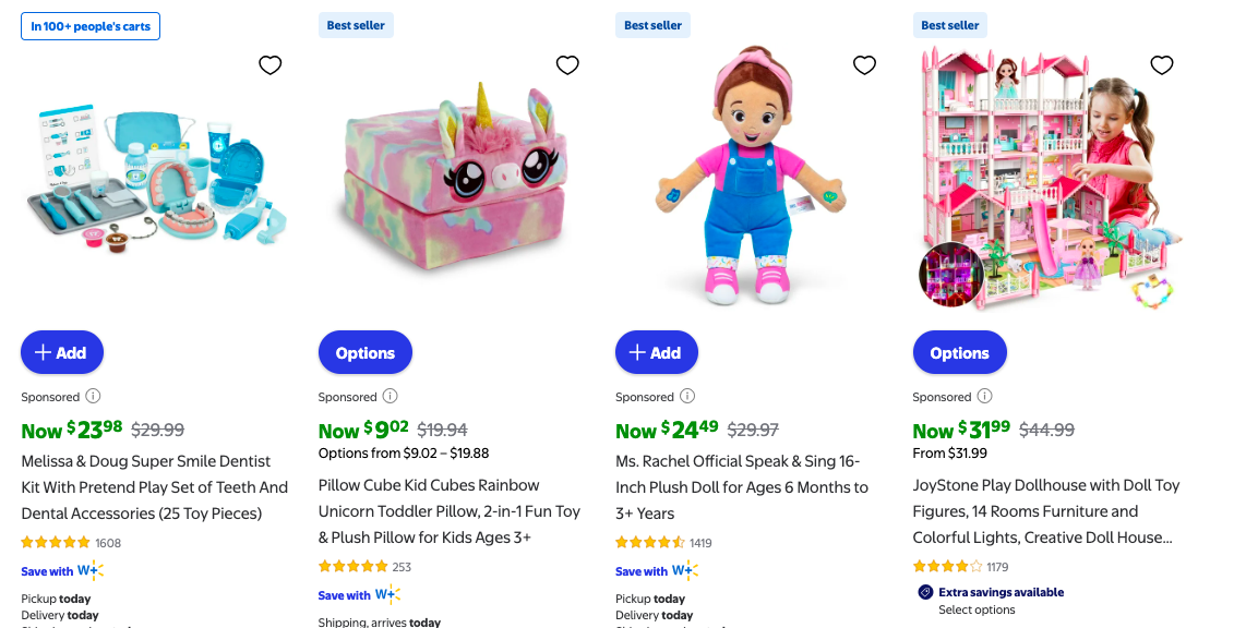 Walmart — один из крупнейших ритейлеров США, где представлен широкий выбор детских товаров по доступным ценам. В разделе игрушек и развивающих игр можно найти всё — от классических конструкторов до современных интерактивных игрушек. Walmart регулярно проводит акции и предлагает быструю доставку по США.