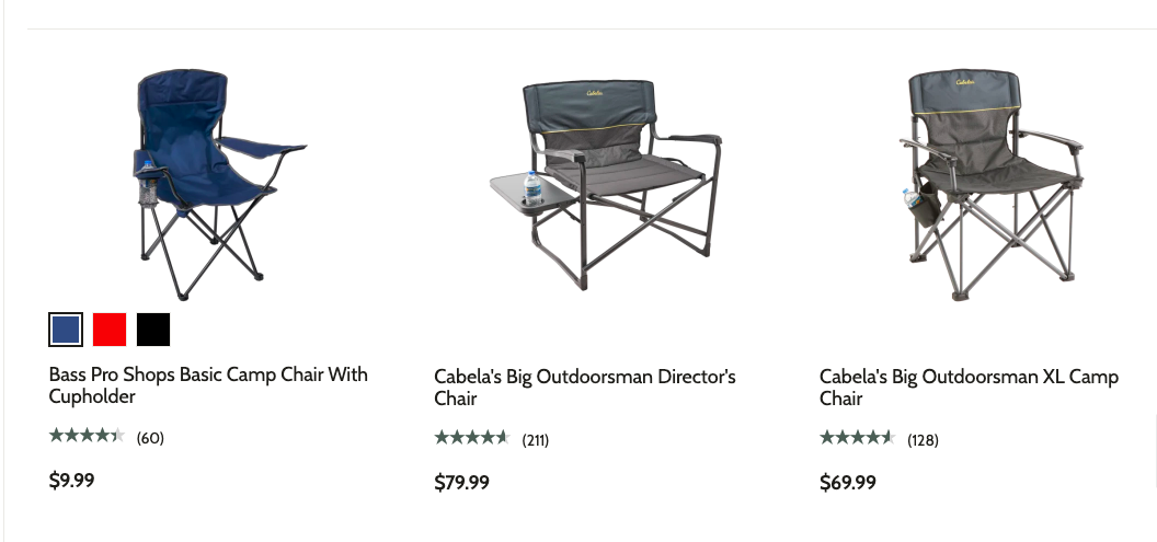 Bass Pro Shops — легендарный американский ритейлер с огромным выбором товаров для кемпинга, рыбалки, охоты и активного отдыха. В каталоге: палатки, спальные мешки, кемпинговая мебель, гриль и посуда, фонари, холодильники, аксессуары для пикника и даже товары для авто и ATV. Bass Pro Shops известен широким ассортиментом, частыми скидками и разделом “Bargain Cave” для выгодных покупок. Здесь можно найти как базовое, так и премиальное снаряжение для любого бюджета.