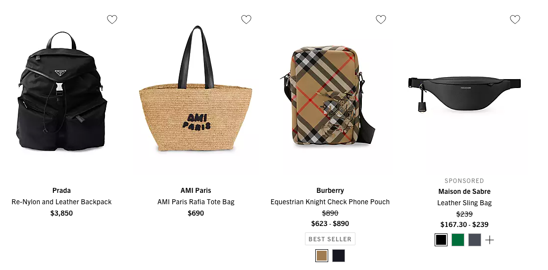Saks Fifth Avenue — еще один топовый универмаг класса люкс с большим выбором дизайнерских сумок и рюкзаков. Здесь представлены как классические, так и современные модели, подходящие для любого бюджета и стиля. Saks предлагает широкий диапазон цен, регулярные распродажи и удобный сервис доставки, что делает покупки комфортными и выгодными.