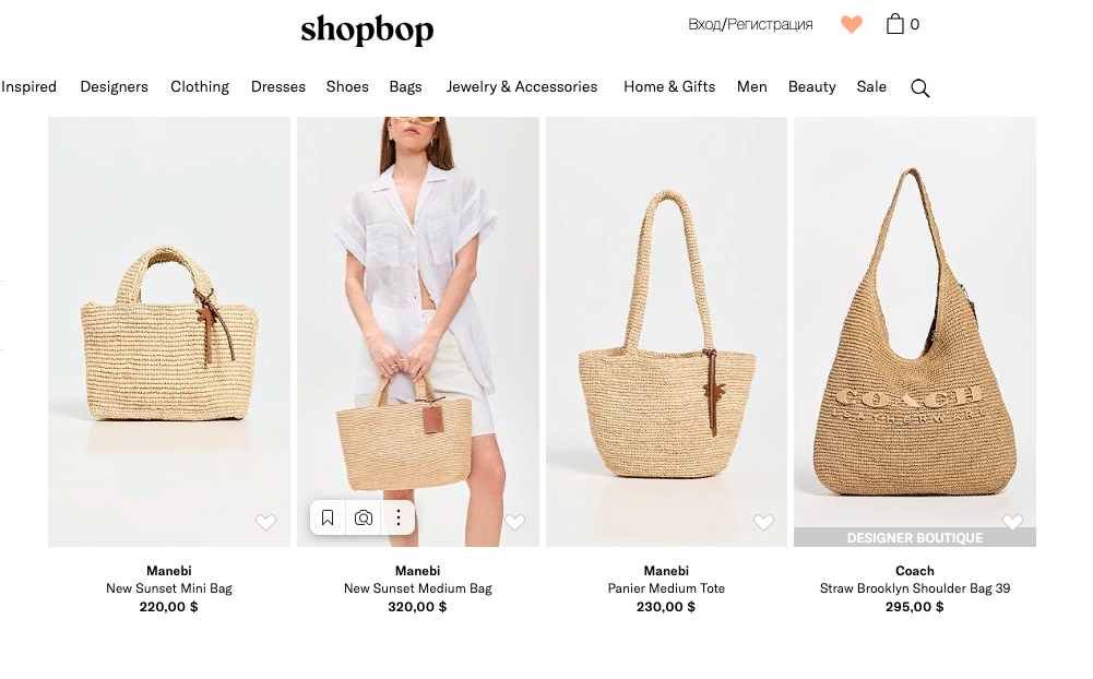 Shopbop — онлайн-ритейлер, специализирующийся на современных дизайнерах и новых брендах. Здесь легко найти модные сумки и рюкзаки, которые станут настоящим «it bag» сезона. Shopbop предлагает разнообразие стилей, частые новинки и вдохновляющий редакционный контент, который поможет подобрать аксессуар под любой образ.