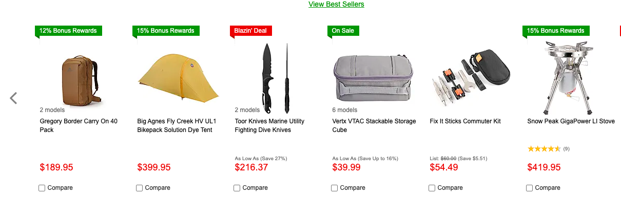REI (Recreational Equipment, Inc.) — легендарный американский ритейлер, который считается золотым стандартом для любителей кемпинга, туризма и outdoor-активностей. В каталоге REI есть всё: палатки, спальники, рюкзаки, одежда, обувь, посуда, фонари, фильтры для воды, навигация и даже экзотические аксессуары для бэкпэкинга. Магазин славится высоким качеством товаров, экспертными консультациями, подробными обзорами и отличной программой лояльности. Здесь легко подобрать снаряжение как для новичка, так и для опытного путешественника.