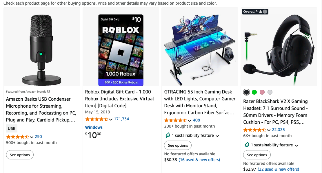 Amazon — крупнейшая торговая площадка с огромным выбором компьютерных комплектующих и аксессуаров: процессоры, видеокарты, материнские платы, SSD, блоки питания, корпуса, мониторы, клавиатуры, мыши, гарнитуры, веб-камеры и многое другое. Преимущества Amazon — быстрая доставка, удобный возврат, огромное количество отзывов и регулярные скидки. Здесь можно найти как новые, так и б/у детали, а также уникальные аксессуары для любой задачи.