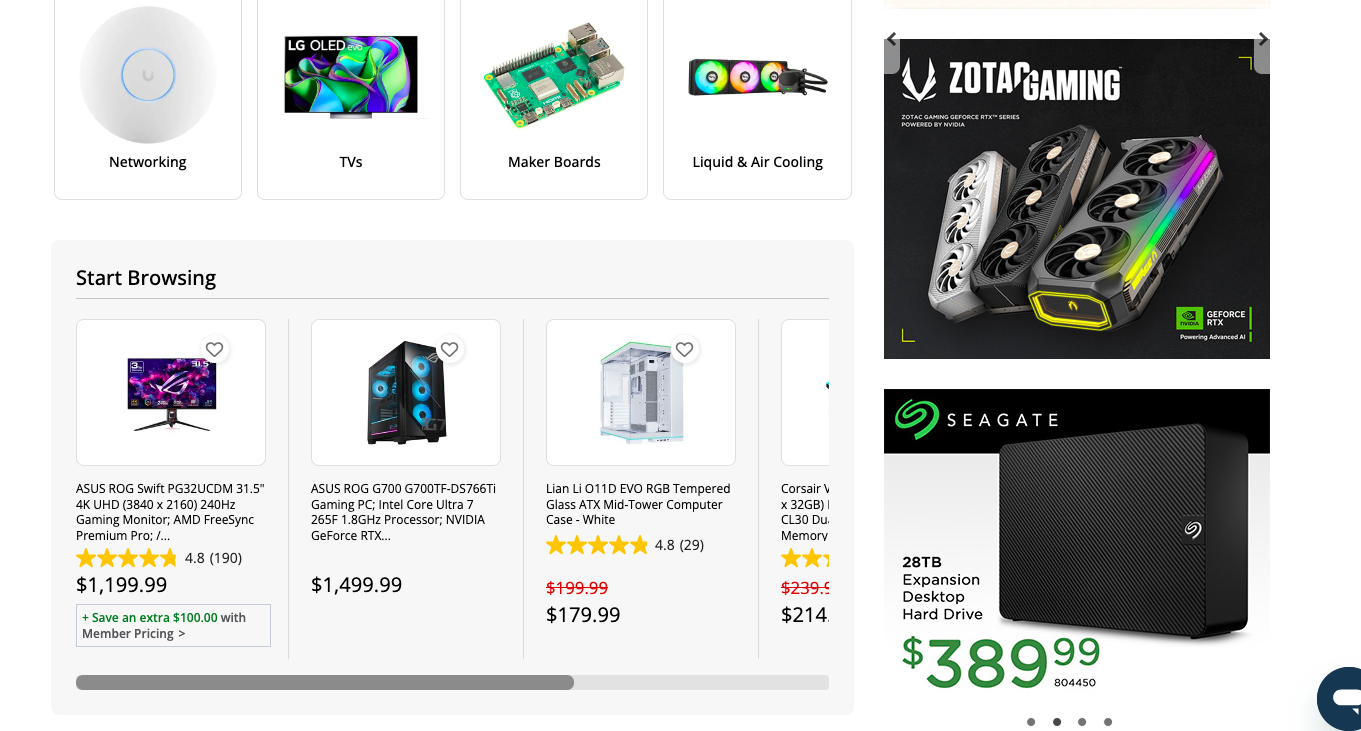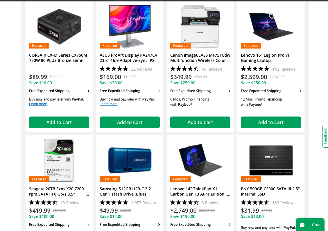 Newegg — один из самых популярных онлайн-магазинов США для покупки компьютерных комплектующих и аксессуаров. Здесь представлен огромный выбор процессоров, видеокарт, материнских плат, оперативной памяти, SSD, корпусов, блоков питания, периферии и аксессуаров для геймеров и профессионалов. Newegg славится регулярными акциями, скидками, удобной системой отзывов и фильтрами по характеристикам. Магазин также предлагает эксклюзивные распродажи и возможность участвовать в “Newegg Shuffle” для покупки дефицитных товаров по MSRP.