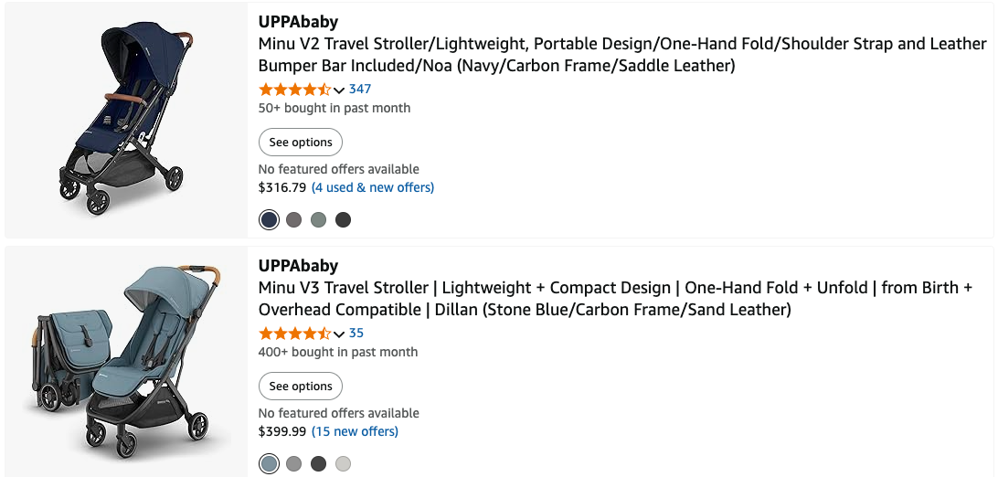 Amazon — крупнейшая онлайн-платформа с огромным выбором колясок UPPAbaby и Bumbleride. Здесь можно найти новые модели, комплекты с аксессуарами и дополнительные опции. Amazon предлагает удобные фильтры, отзывы покупателей и быструю доставку по США.