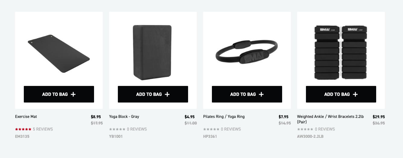 SMAI USA — магазин с отличным выбором аксессуаров для йоги и пилатеса по доступным ценам. В каталоге: коврики, блоки, кольца, пилатес-боллы, утяжелители для рук и ног, а также ремни для растяжки. SMAI USA делает ставку на функциональность и долговечность товаров, а также регулярно радует покупателей скидками и акциями.