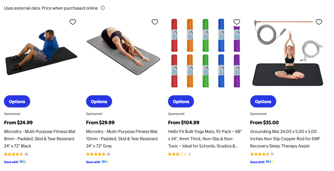 Walmart — крупнейший американский ритейлер с огромным выбором товаров для йоги и пилатеса по демократичным ценам. В разделе йоги и пилатеса легко найти коврики, блоки, ремни, мячи, одежду и даже компактные тренажёры. Walmart регулярно проводит распродажи и предлагает быструю доставку по США.