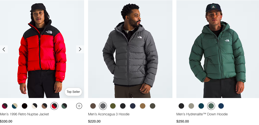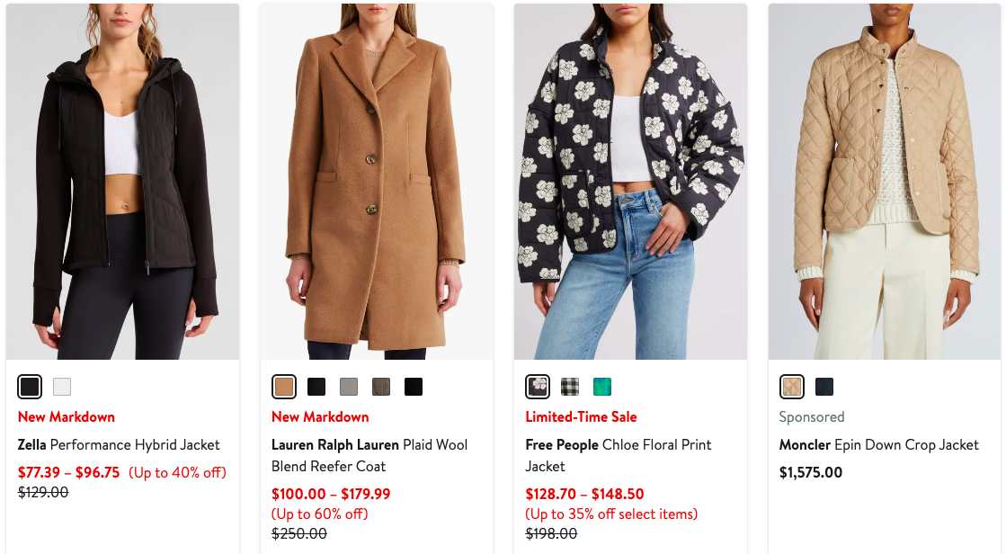 Nordstrom — один из самых популярных универмагов США с огромным выбором верхней одежды для мужчин и женщин. В каталоге представлены пальто, пуховики, парки и куртки от ведущих брендов, таких как The North Face, Canada Goose, Patagonia, Columbia и многих других. Nordstrom славится высоким уровнем сервиса, удобной навигацией и регулярными акциями. Магазин предлагает быструю доставку по США и сотрудничает с посредниками для отправки заказов в Россию.
