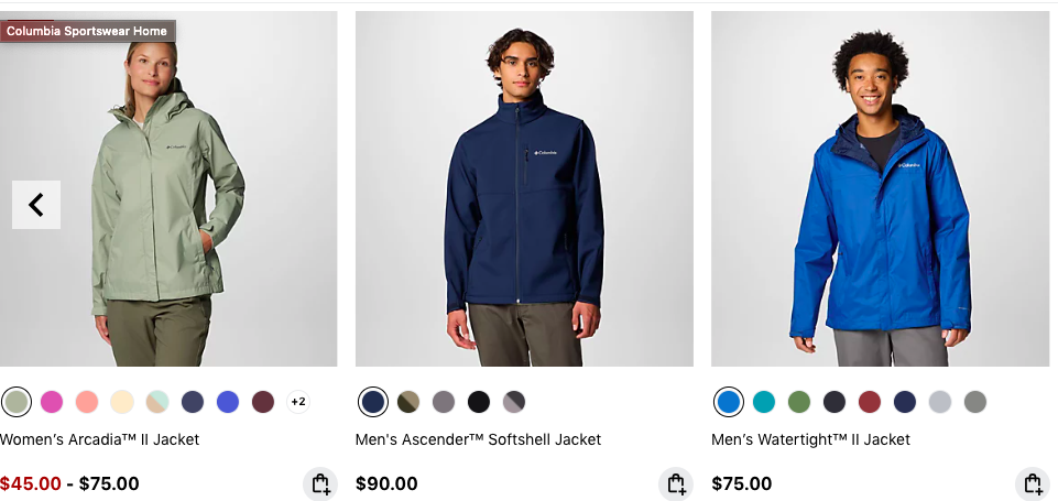 Columbia — бренд, специализирующийся на верхней одежде для активного отдыха и повседневной носки. В каталоге — теплые куртки, водонепроницаемые парки и легкие ветровки с технологией Omni-Heat и другими инновациями. Columbia предлагает отличное соотношение цены и качества, а также удобную доставку по США.