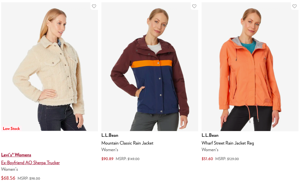 Zappos — онлайн-магазин, специализирующийся на одежде и обуви, с большим выбором верхней одежды от популярных брендов. Магазин предлагает удобный поиск, подробные описания и отзывы покупателей, а также бесплатную доставку и возврат. Zappos славится высоким уровнем сервиса и надежностью.
