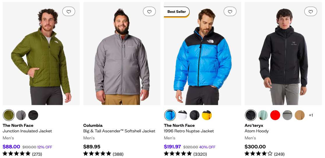 REI — крупный магазин товаров для активного отдыха, где представлен широкий выбор верхней одежды от лучших брендов. Здесь можно найти куртки, пуховики и пальто для любых погодных условий, а также аксессуары для зимних видов спорта. REI предлагает экспертные консультации, удобный возврат и регулярные скидки.