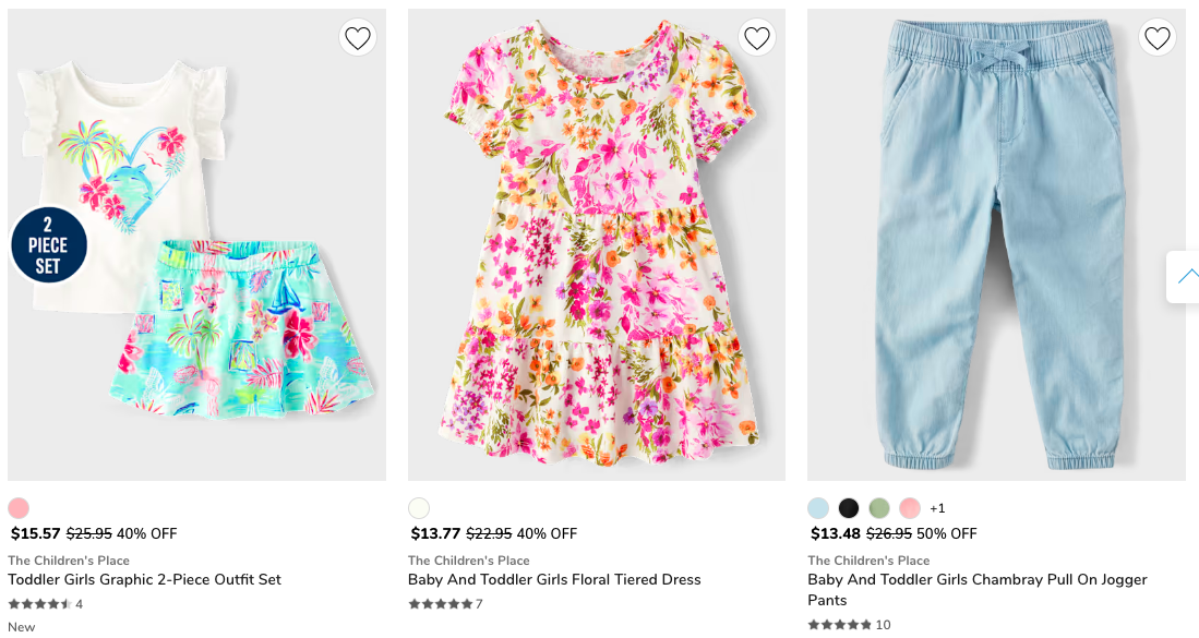 The Children’s Place — один из самых популярных бюджетных магазинов детской одежды в США. Здесь представлен огромный выбор одежды для малышей и детей до 12 лет: от повседневных футболок и джинсов до школьной формы и праздничных нарядов. Магазин предлагает удобные комплекты, аксессуары и обувь, а также частые скидки и акции. The Children’s Place — отличный вариант для тех, кто хочет купить качественные вещи по доступной цене.