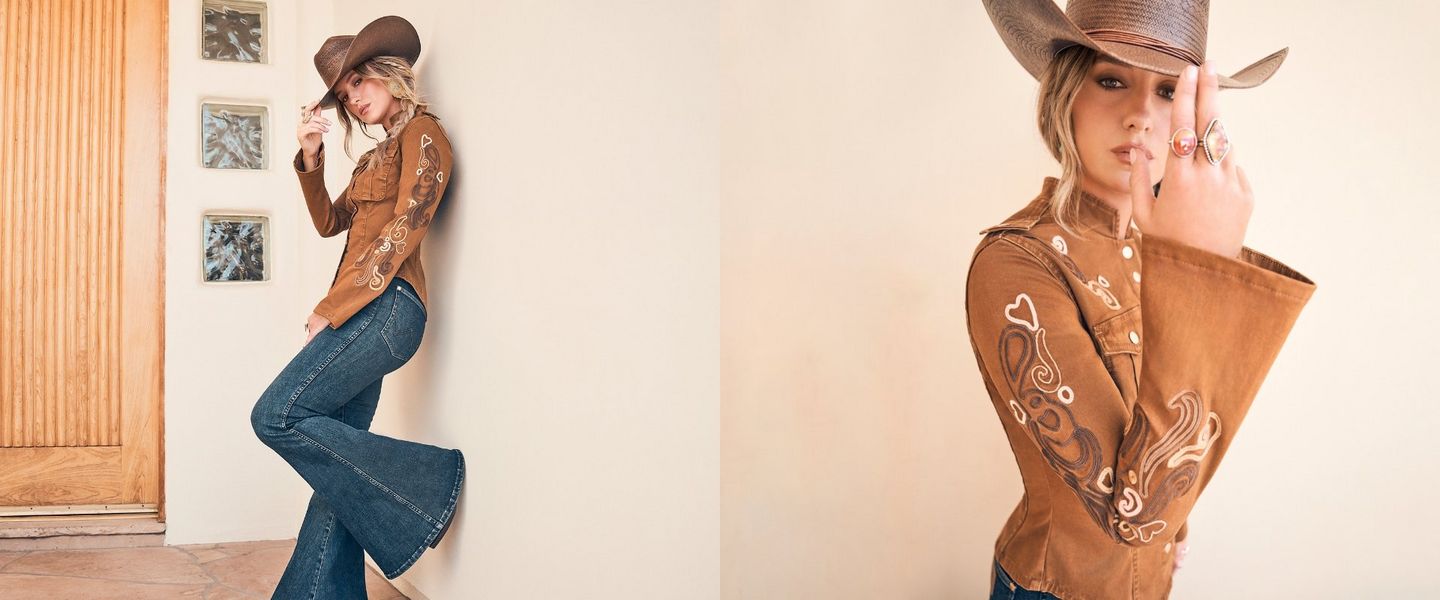 Просто потрясающая коллаборация с американской звездой кантри Лэйни Уилсон! Майки, джинсы, аксессуары – ковбойская эстетика, выкрученная на максимум.